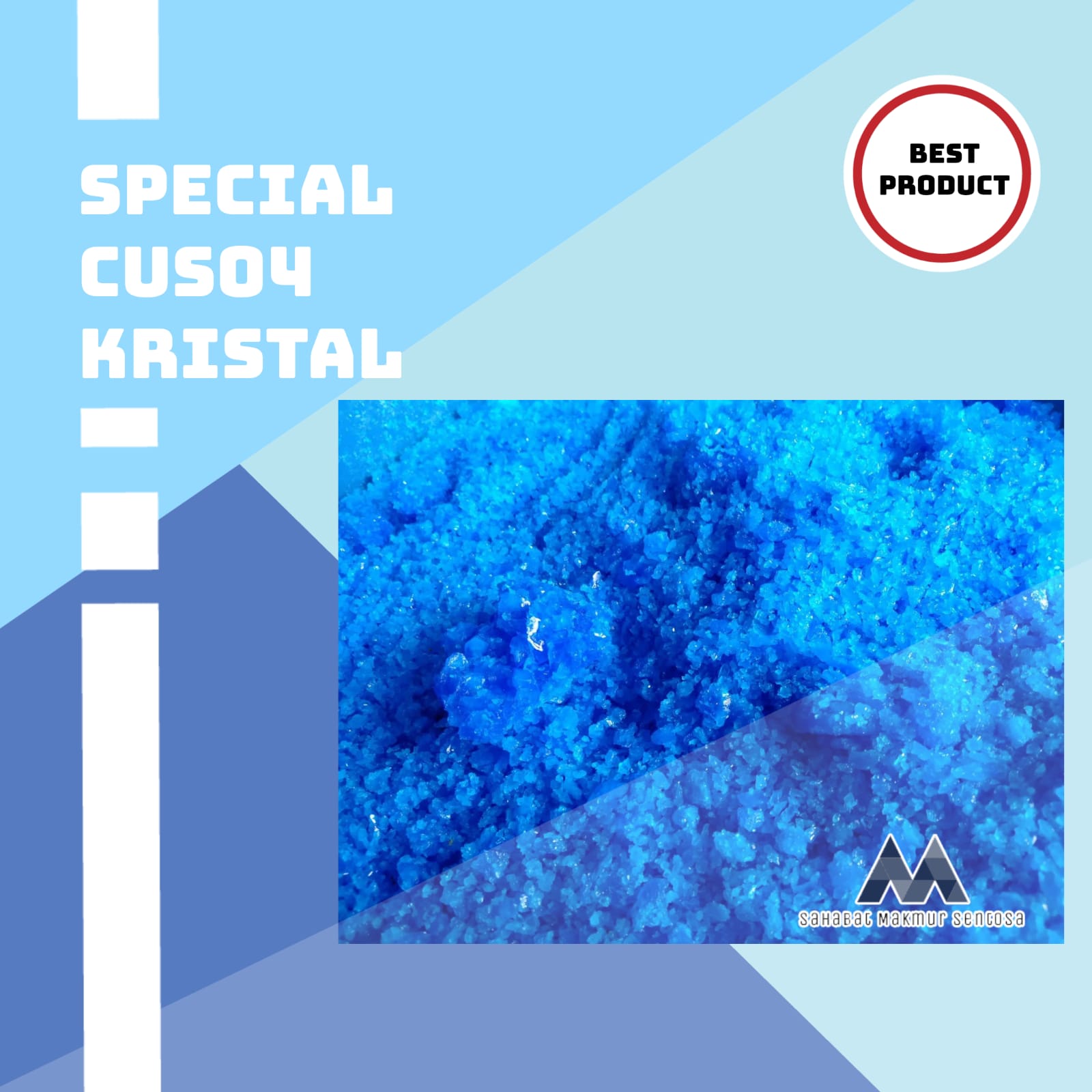 Manfaat Copper Sulphate (Cu)/ Terusi:1.untuk di perawatan air kolam Terusi juga berfungsi sebagai algesite untuk mencegah pertumbuhan lumut, juga digunakan untuk membirukan air kolam renang. Terusi bisa mengendalikan organisme pembunuh mikro di kolam air, sehingga air bisa tetap jernih dengan terusi. Dosis terusi yang dapat ditambahkan pada kolam renang adalah dengan melarutkan terlebih dahulu garam… selengkapnya